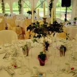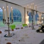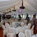 Elle est entièrement équipée pour un mariage en clé (tables, chaises, piste de danse, chauffage, parquet, vélum, lustres…). Il ne manque que votre décoration personnelle.